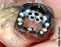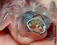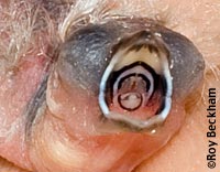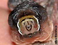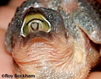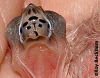 What are Mouth Markings? As aviculturists, being able to identify a chick by its mouth markings can be an asset. I often use the mouth markings to identify chicks in mixed clutches that have been fostered. They can also be used to identify tossed chicks in mixed aviaries, or to identify a nest of surprise chicks that you're unsure of their parentage. Another thing to be aware of is the effect of mutations on the mouth markings and the attention the parents may or may not give that chick. Often, the dilution seen in the plumage is also seen in the mouth color and the markings. White or albino birds often lack any color at all in their mouth markings and this can sometimes lead to chicks that lag behind or are not fed at all if mixed with chicks with normal mouth markings. |