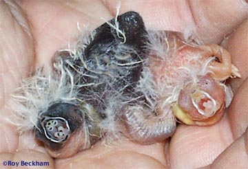 Mutation Effects Regular CFW (Also known as old type, Black eyed or UK CFW. Formally known as Marked White) Female: Like the males, the females will have a white body with dark tear marks under the eyes. The tail will also be a diluted gray. Females often have more black flecking on the top of the head than do males. (click to view a Reg. CFW female) Fledglings: The chicks, unlike most dilute varieties, do not show any change in body or beak color. They are dark bodied with black beaks. They can be identified as soon as the white pin feathers of the wings start to show. Young females tend to carry more dark feathering on their heads than the males and can be identified early. Continental CFW (Also known as new type or red eyed CFW) Female: Like the male, female Continental CFWs are similar to their Regular counterparts, but have a cream back, black tail bars and red eyes. The Continental CFW females are also free of any black flecking on the head. (click to view a Continental CFW female) Fledglings: Continental CFW chicks are easily identified in the nest. They have pink skin and bright pink eyes. The mouth is nearly totally void of the normal mouth markings (see mouth markings).