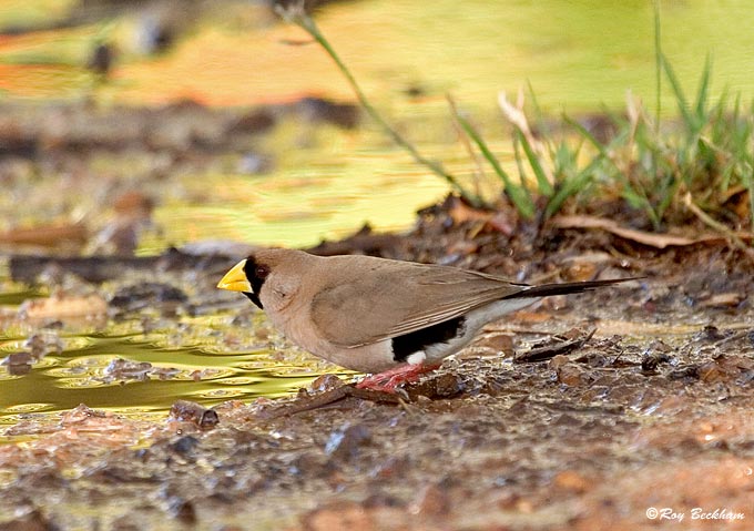 Description The Masked Grassfinch can be difficult to sex. Males and females are nearly identical in appearance. When seen in a group, the male's face mask may extend further back on the top of the head than the female which will have a very narrow band of black next to the beak. The "trouser stripe" behind the legs can also be wider on the males. Beak color can be a richer yellow in males, but quite often this is more an indication of condition rather than of sex. Males will of course have a courtship song.