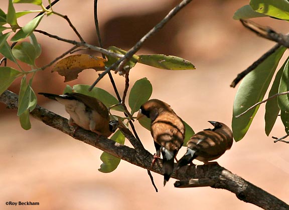Juvenile Masked Grassfinch (left) with parent. (click to see a wild Masked Grassfinch feeding young fledglings)