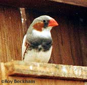 Mutation Effects Male and Female: White feathers replace the normal colored feathers in random patterns. On some specimens, the white areas totally eliminate the male markings. In these cases the color of the beak is used to sex the birds. Fledglings: Pied chicks can often be identified in the nest as soon as the wing feathers beginning to form. The beak of the young can also be mottled pink and black depending upon the amount of white feathering. This will later change to orange as the bird matures. Identifying Splits Combinations It should not be combined with white mutations, except for the all White, or pattern mutations like the Penguin. The white blotches of the Pied mutation when combined with white mutations like CFW, Florida Fancy or Fawn Cheek tend to ruin the effect of the orange markings on the white body. The dilute varieties like Dominant Silver also do not offer the contrast needed to make a very attractive combination. Black Face Recessive Silver Pied male (click to view) Notes The show standard calls for half the bird to be white and all the markings to be broken up approximately 50 percent. This is actually quite difficult to achieve. 'Light' pieds tend to have very little white and it starts with the flight feathers, chin and head. With repeated Pied x Pied matings, the amount of white increases. This can increase to the point that the last area of normal coloring is the back. These are often referred to as Saddleback Pieds. The amount of white can increase to the point that all the feathers are white. These white Pieds are sometimes entered in shows as 'White' Zebras and compete very well. Pieds are generally larger and have better conformation than the White Zebras that are available. The only way to determine if the bird is genetically a Pied or a White is with test matings. While many Zebras that are split for pied will show occasional white feathers, some birds that have been the repeated victim of a feather plucker will have the feathers grow back as white. If the follicle is damaged or if the bird is malnourished an unable to create the pigments, these feathers will grow back a pure white. This is not genetically controlled. |